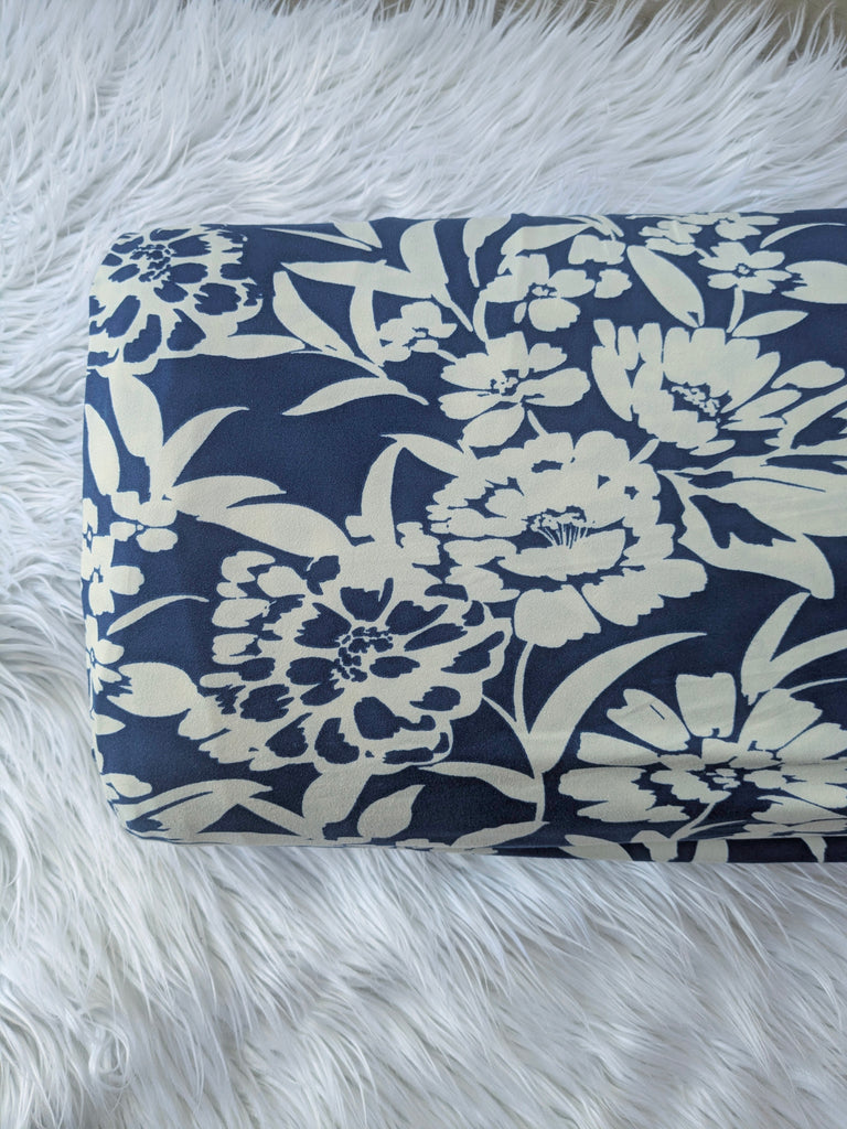 Navy With Large Floral|Double Brushed Poly|By the Half Yard
