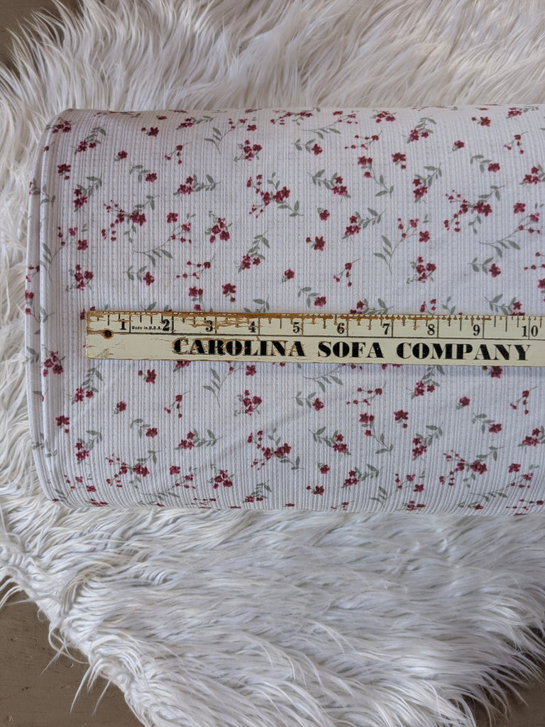 Burgundy Petite Sprigs | Pointelle Rib Knit|By the Half Yard