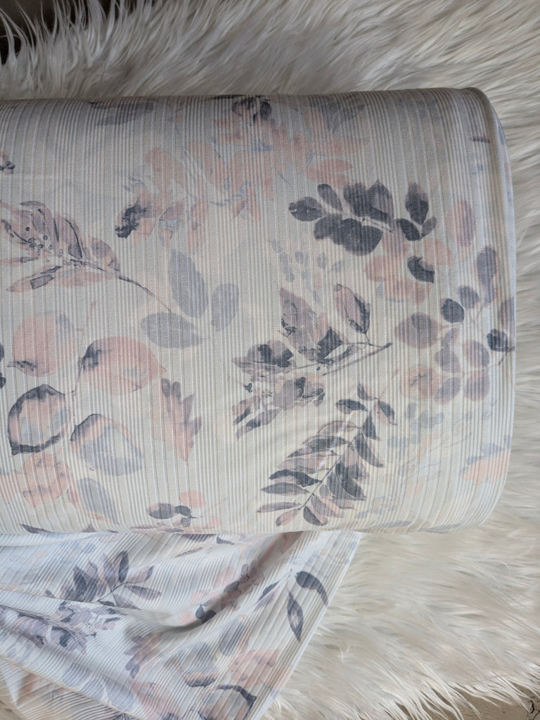 Peach & Periwinkle Watercolor Sprigs| Variegated  Rib Knit |By the Half Yard