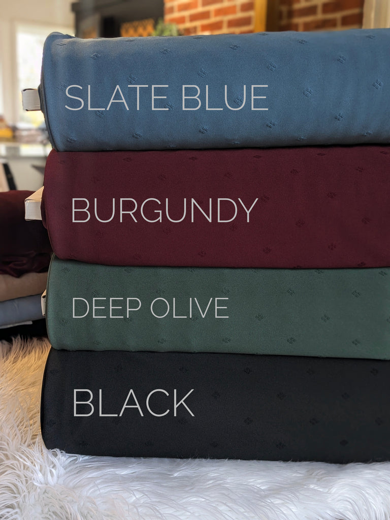 A new diamond design on the same quality fabric like the good quality swiss dots. 100% Polyester knit, feels soft and like a knit, with some stretch. This is a soft fabric with nice drape, not see through and has some stretch. Can be dressy or casual.