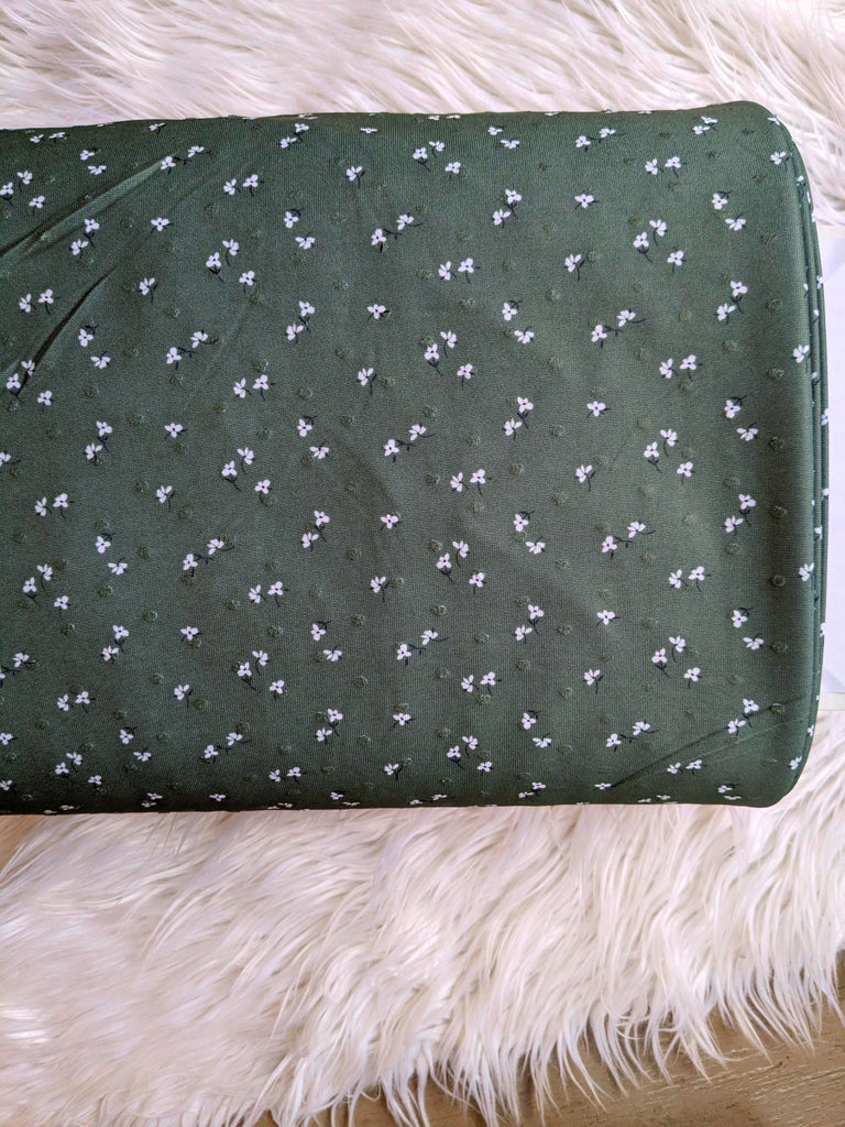 Petite Floral on Dark Sage/Olive|Swiss Dot Poly Knit|By the Half Yard