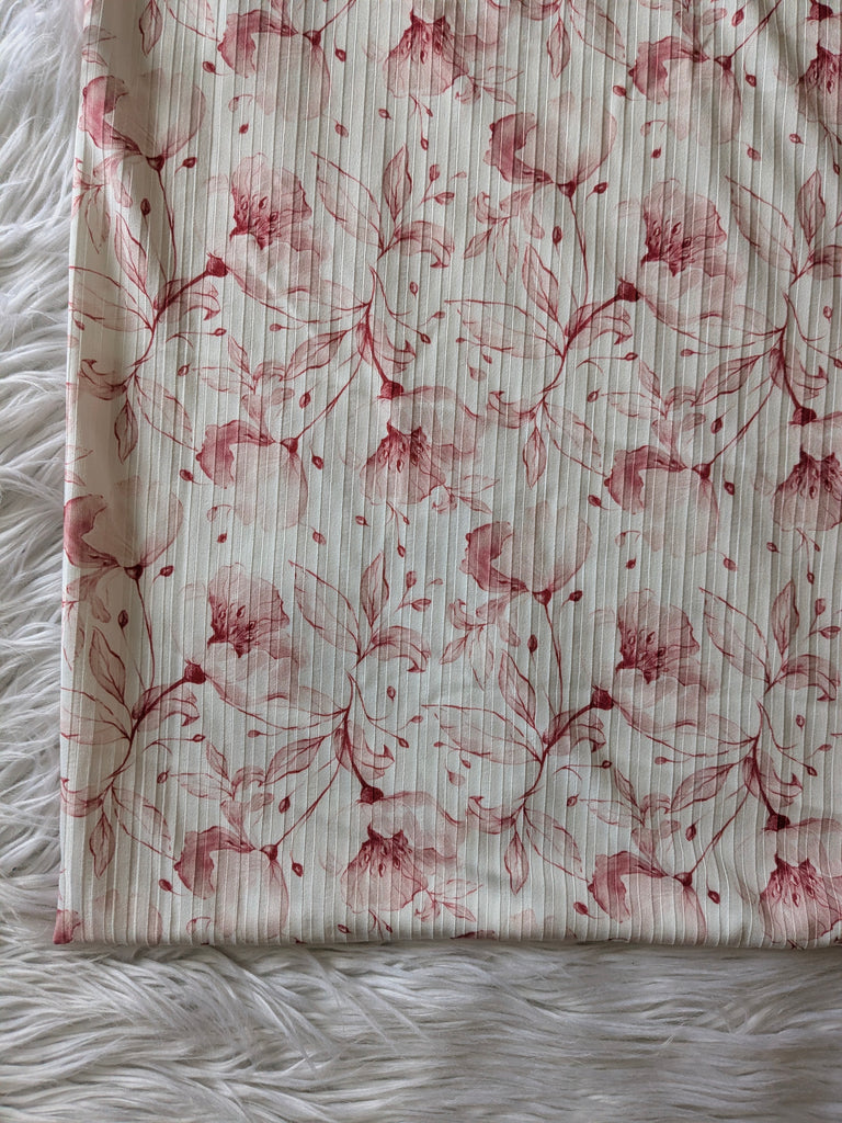 Custom Print|Cranberry Floral on Ivory | Wide Yummy Rib Knit|By the Half Yard