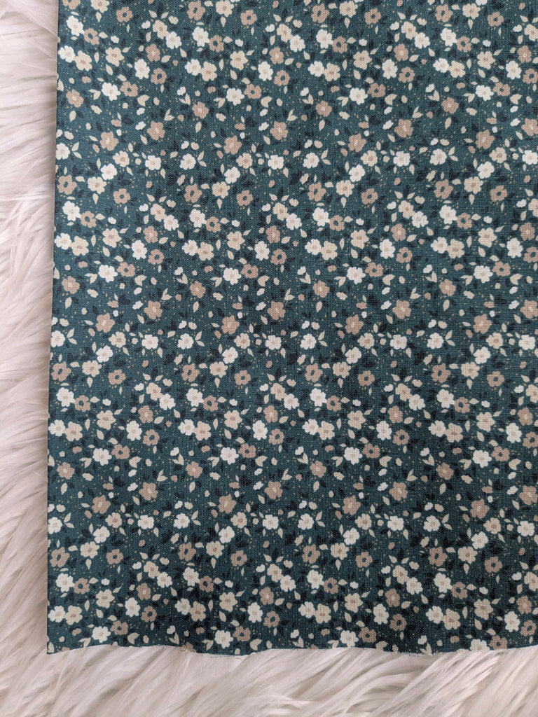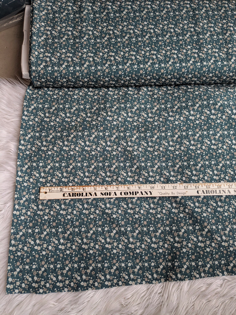 Custom Print|Mini Print on Evergreen|Polyester Slub Linen Look| By the Half Yard