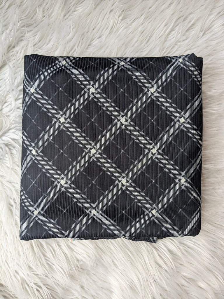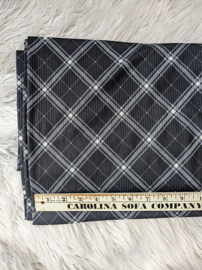 Custom Print |Diagonal Tartan Plaid on Black |Unbrushed Variegated Rib Knit|By the Half Yard