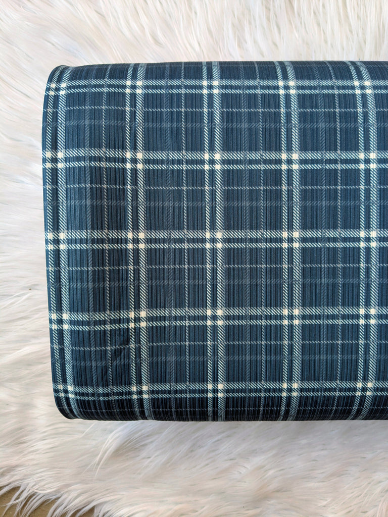 Winter Teal Plaid | Unbrushed Variegated Rib Knit|By the Half Yard