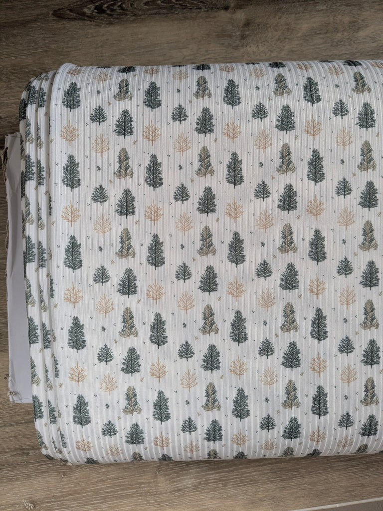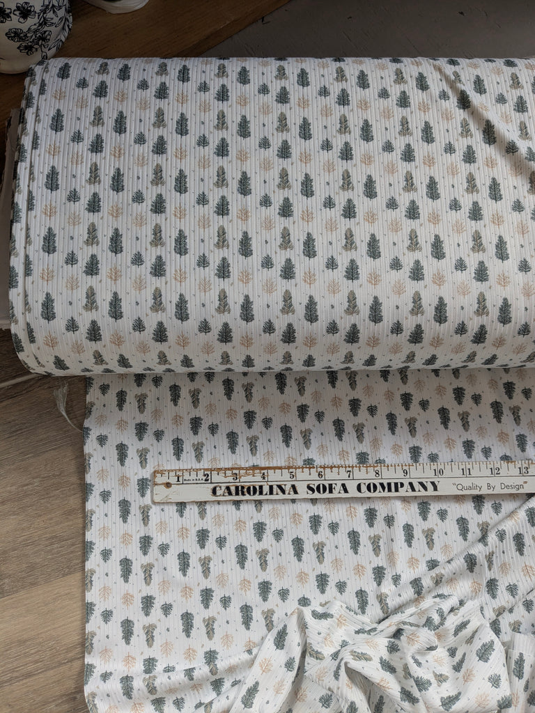 Custom Design|Evergreen & Gold Stems Unbrushed Rib Knit|By the Half Yard